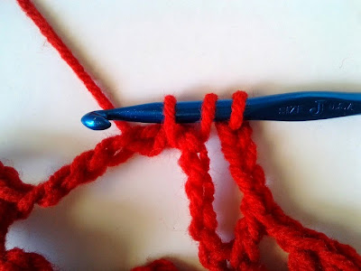 Extended double crochet (ext dc)- Yarn over, insert the hook, pull up a loop. Yarn over, pull through one loop. (Yarn over, pull through 2 loops) twice.